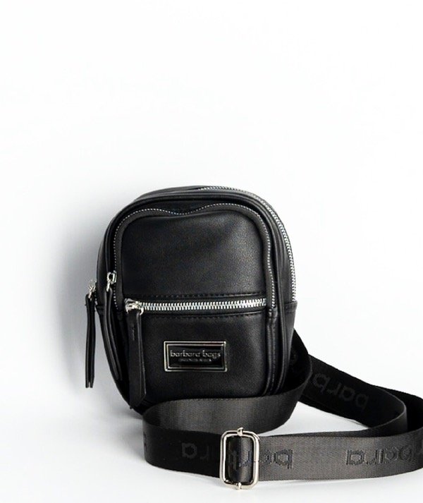 Altura: 20cm Base: 14cm Prof: 4cm Minibag de p.u . Dos bolsillos delanteros Correa desmontable