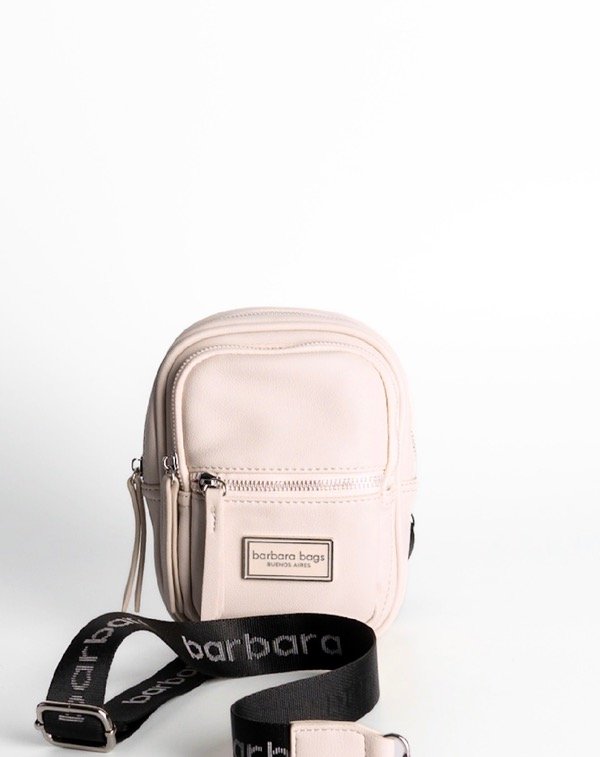 Altura: 20cm Base: 14cm Prof: 4cm Minibag de p.u . Dos bolsillos delanteros Correa desmontable