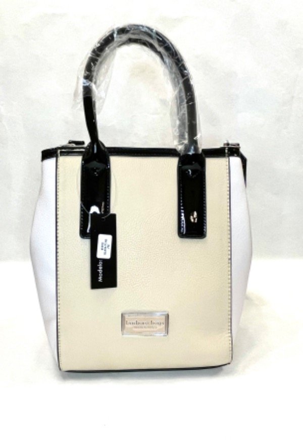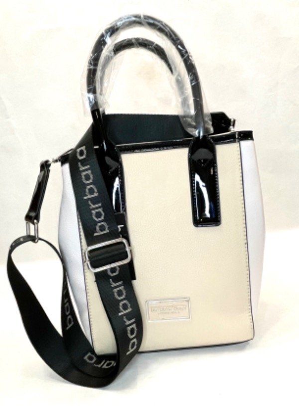 Cartera pequeña de p.u con manijas de charol negro. Correa de cinta.