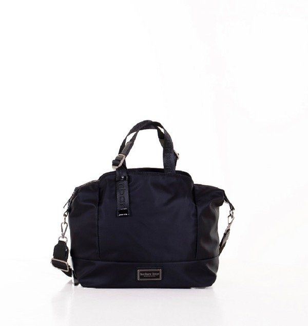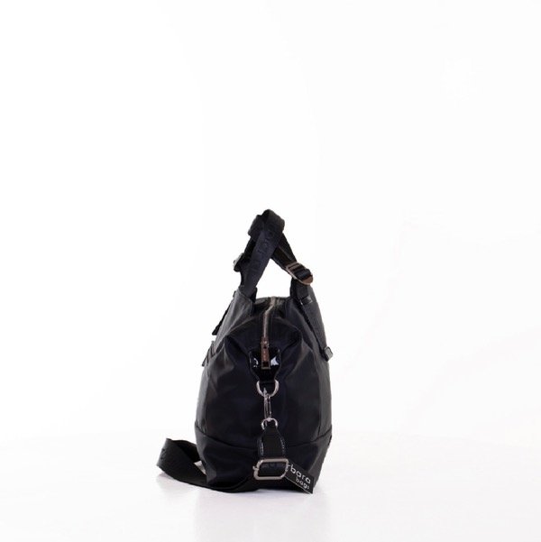 Altura: 26cm Base: 29cm Prof: 12cm. Cartera de nylon combinada con charol
