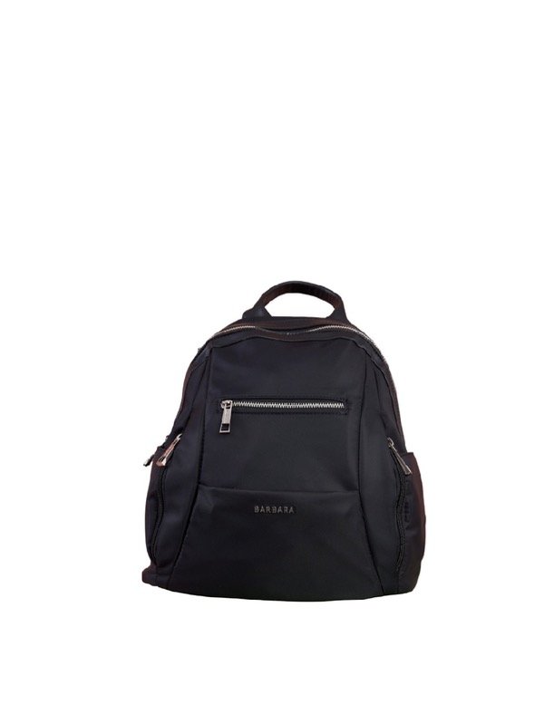 Altura: 30cm Base: 30cm Prof: 12cm Mochila de nylon Cuatro bolsillos delanteros y uno trasero Dos a los lados Tres bolsillos internos