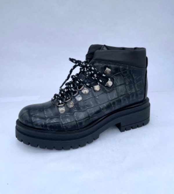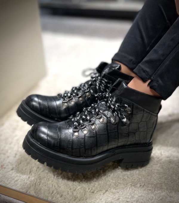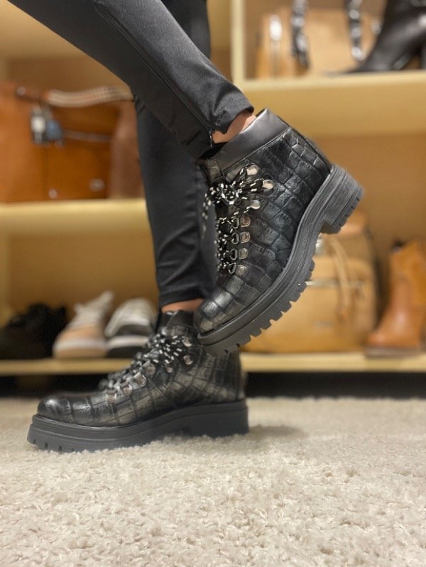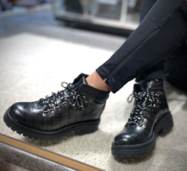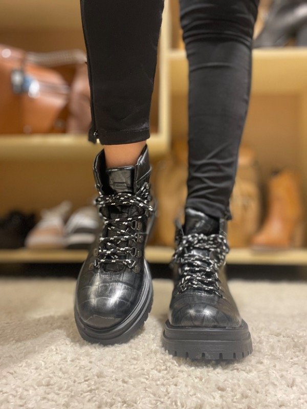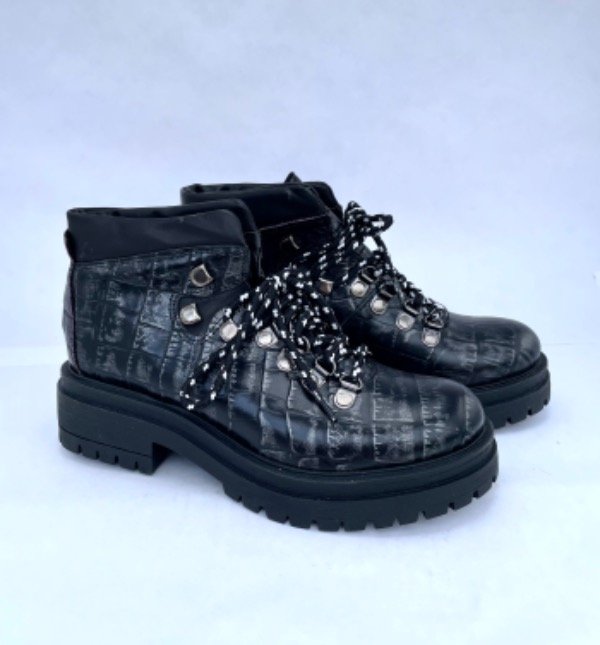 Borcegos de cuero. Acordonados. Base de goma antideslizante. Color Negro