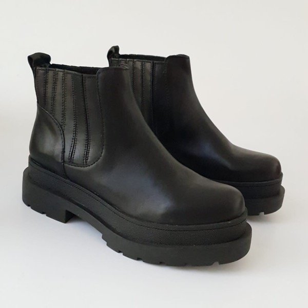 Borcegos de cuero. Con elásticos en ambos laterales. Base de goma antideslizante. Color Negro