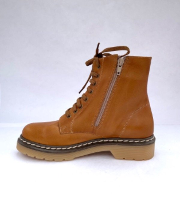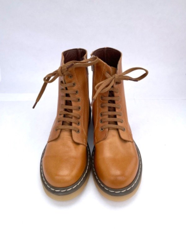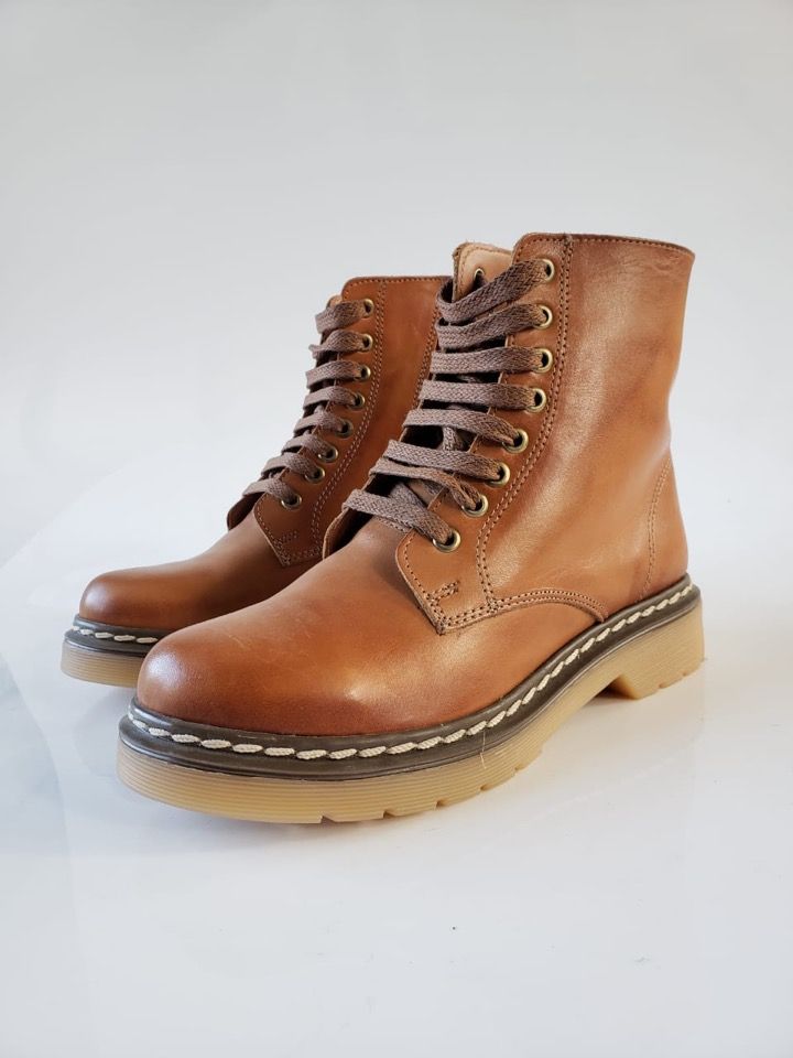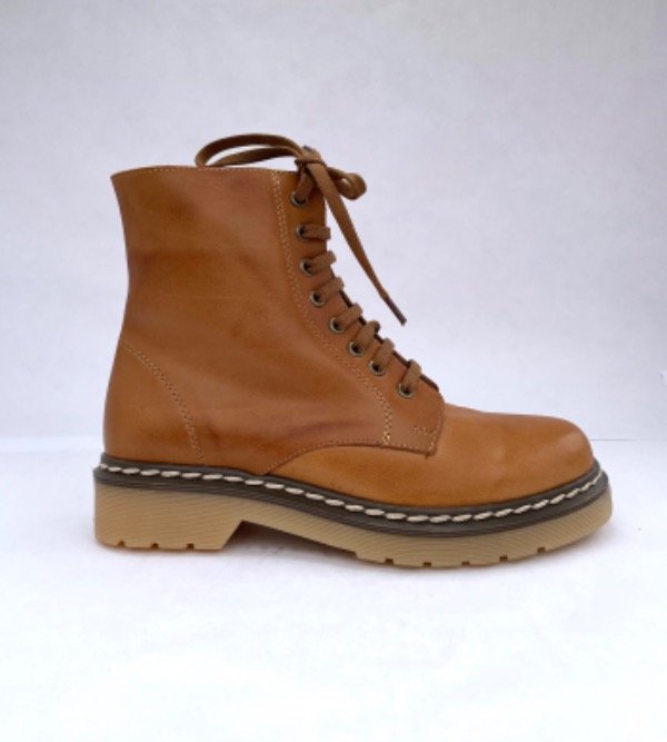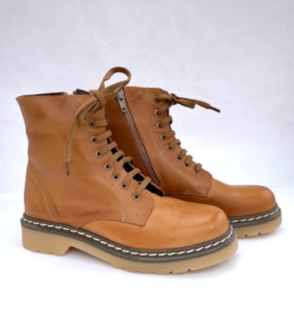 Borcegos de cuero. Cierre en un lateral. Acordonados. Base de goma antideslizante. Color Arena.