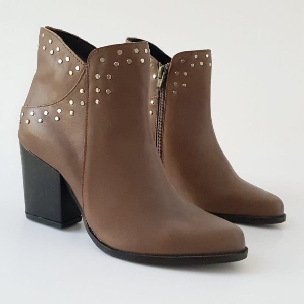 Botas de cuero. Cierre en un lateral. Taco de 8,5 cm aprox. Parte de la suela con antideslizante. Color visón.