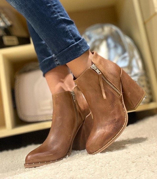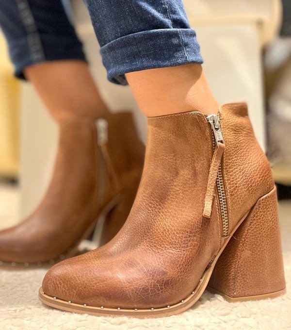 Botas de cuero. Cierre en ambos laterales. Taco de 8,5 cm aprox.