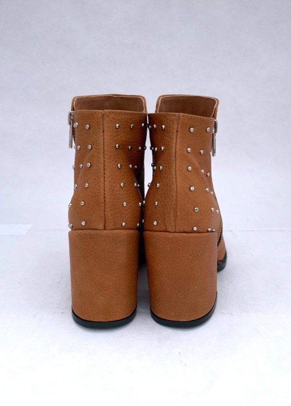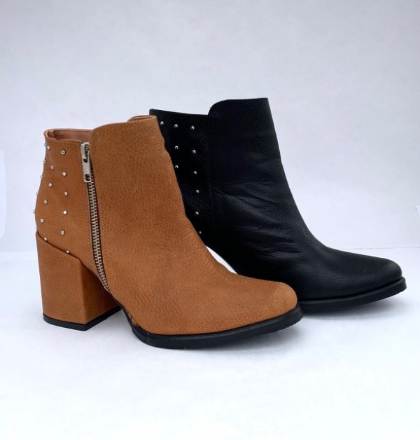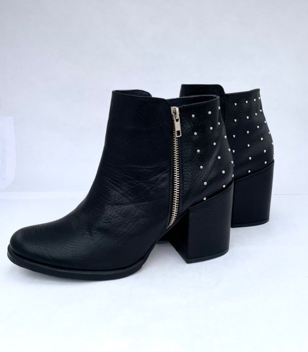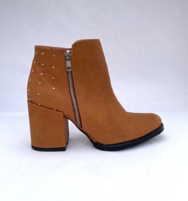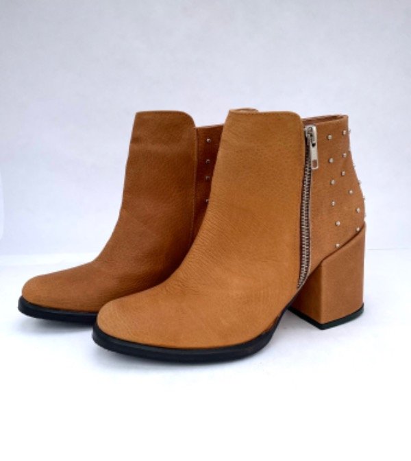 Botas, calidad cuero. Cierre en un lateral. Tachas en la parte de atrás. Finas y cómodas.
