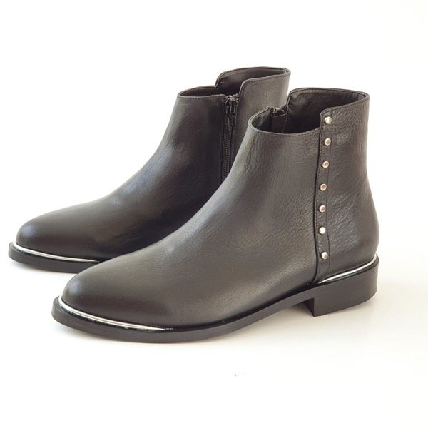 Botas de cuero. Cierre en un lateral. Detalle metálico en la punta y parte trasera. Muy finas.