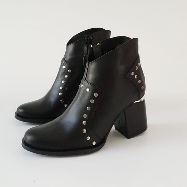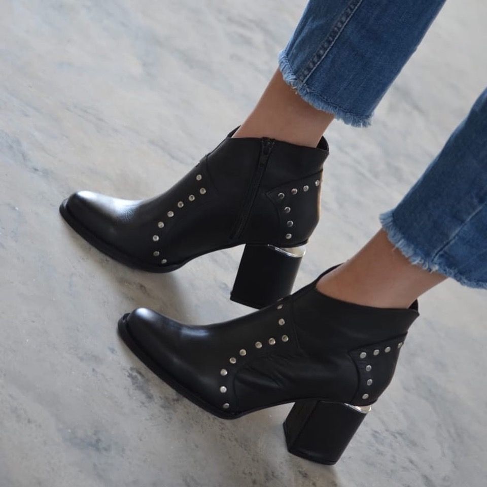 Botas de cuero, cierre en un lateral, taco con efecto “cortado” super firme de 5,5 cm aprox. Color negro