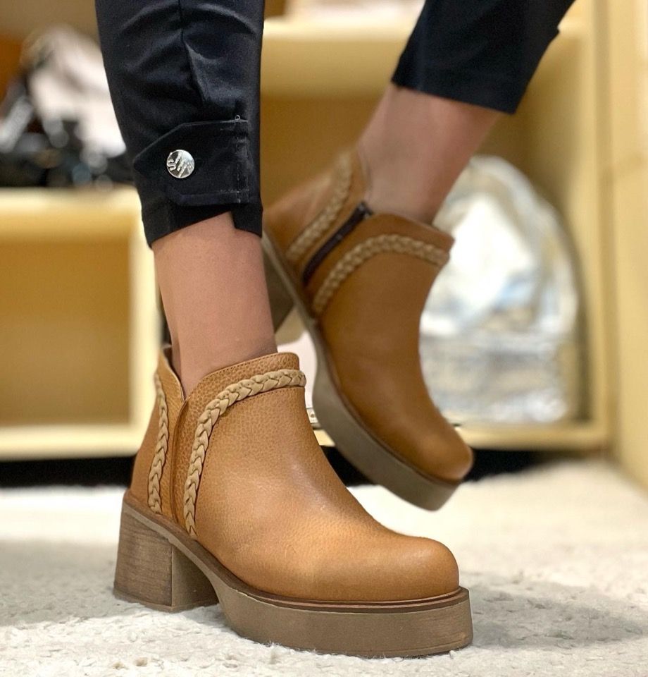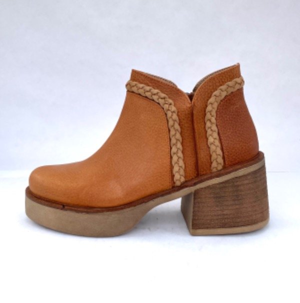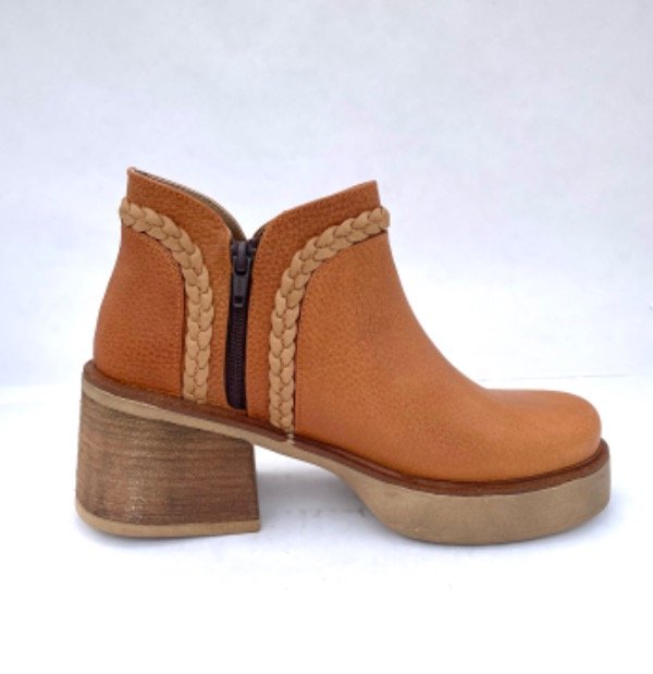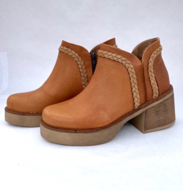 Botinetas de cuero. Cierre en un lateral. Color suela. Taco de 6 cm. Aprox.