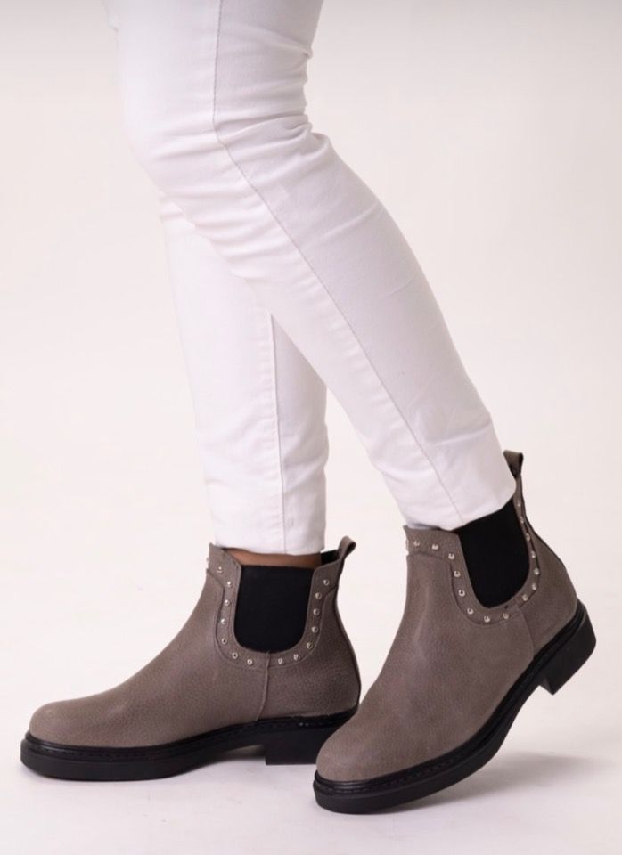 Botas de cuero color gris, con elásticos laterales. Base de goma antideslizante. Super cómodas y originales.