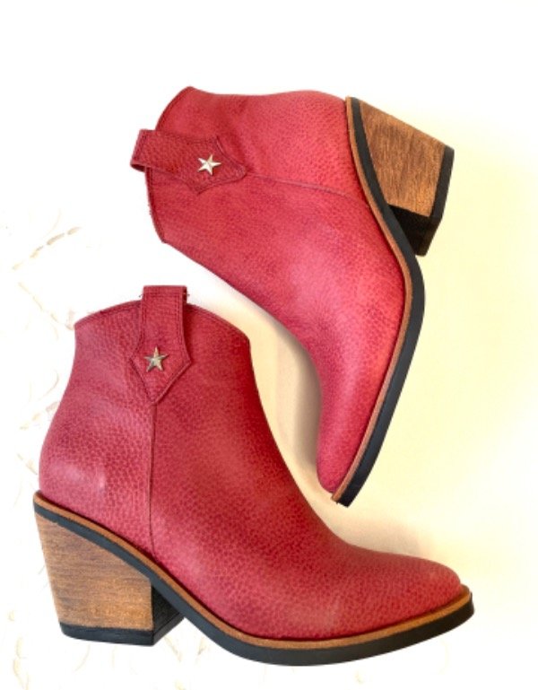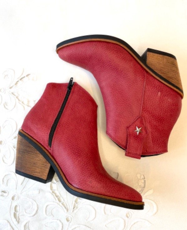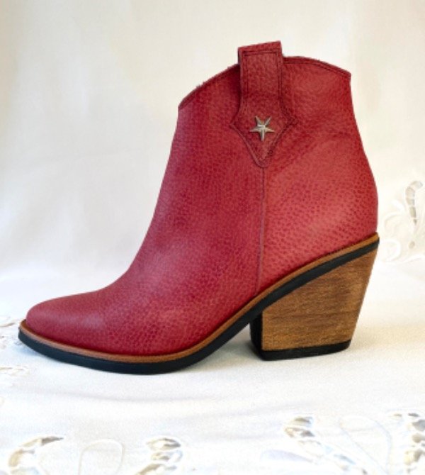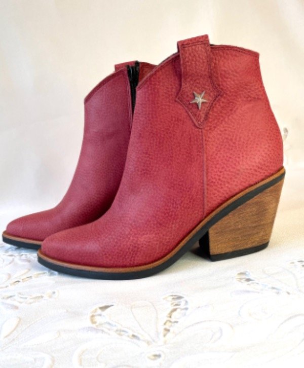 Botas de cuero, granulado,color rojo. Cierre en un lateral, taco: 7 cm aprox. Muy livianas. Base de goma antideslizante.
